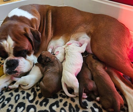 Nova is a beautiful AKC 100% European Boxer. A gorgeous flashy fawn Color.